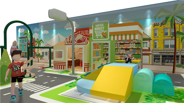 The City Theme Toddler Playground dijamin bisa ngrangsang imajinasi lan kreatifitas anak, nyedhiyakake pengalaman sinau sing nyenengake lan nyenengake. Dolanan lemah, dalan, lan dalan bisa digunakake kanggo ningkatake aktivitas fisik, lan area pawon, restoran, lan supermarket bisa digunakake kanggo mulang bocah-bocah babagan donya ing saubengé.
