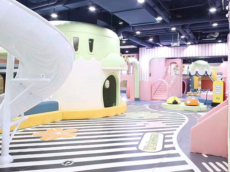 III. Selection of Equipment Materials and Equipment Protection: When decorating indoor children’s playgrounds, safety considerations for children are essential. Details such as designing softer edges for corners that children may easily bump into, such as elliptical or circular shapes, or wrapping them with a layer of sponge, are crucial. Additionally, the choice of decorating materials must be healthy, non-toxic, odorless, and of high quality. Only high-quality equipment can make children play happily, and parents will feel more reassured.