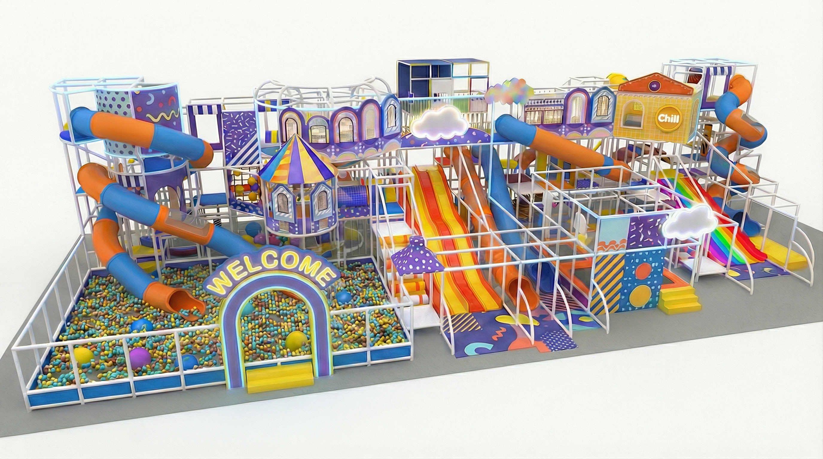 Indoor playground is like the fun world for kids, it could contain multiple different play areas with different play activities catering for different kids age group. we mix adorable play elements together in our indoor playground to create an immersive play environment for kids. From design to production, these play elements meet the requirements of ASTM, EN, CSA. Which is the highest safety and quality standards around the world.